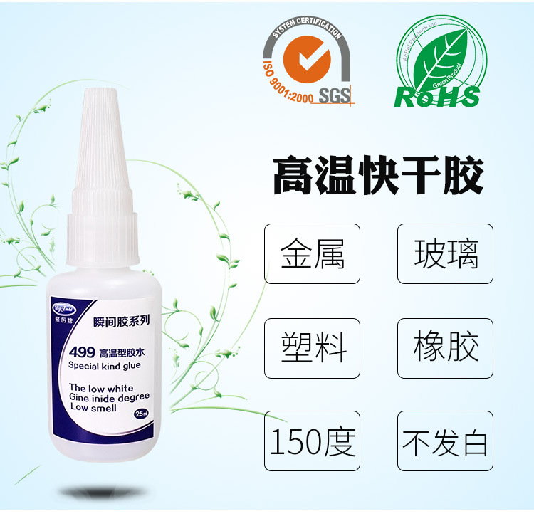 聚力膠水的JL-499金屬瞬間膠是一款能把金屬粘接在一起的強力耐高溫瞬間膠,完全固化后可達到耐高溫100度不脫膠的強度,短時間可耐連續120℃高溫和150℃循環高溫,流動性好,低刺激性氣味,能在8-10秒內完成定位,半小時就可以達到使用強度,并且JL-499金屬高溫瞬間膠不會像其它的瞬間膠那樣固化后會變得很硬很脆,也不會有白化現象,只是JL-499金屬高溫瞬間膠只適合面積較小的金屬和電子元件粘接,而且是面積越小強度越高。
