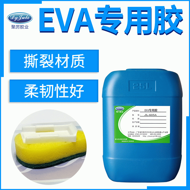 聚力EVA專用膠水,是一款單組份顏色淡黃,適合人工涂膠以及復合機滾膠,是專門針對EVA材質專用粘合劑。主要應用于EVA海綿、PVC、ABS、PC、EPE泡沫、金屬等材質粘接,具有耐水泡.抗彎曲.強度高.環保低氣味.抗腐蝕,并通過食品包裝級檢測和認證.