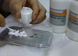 3、每次調膠量不宜過多,在散熱器皿(如銅片)上調膠。