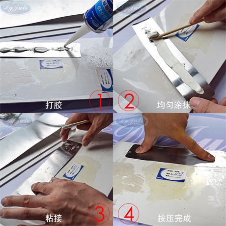 先把金屬材質表面清理干凈,然后涂膠 -